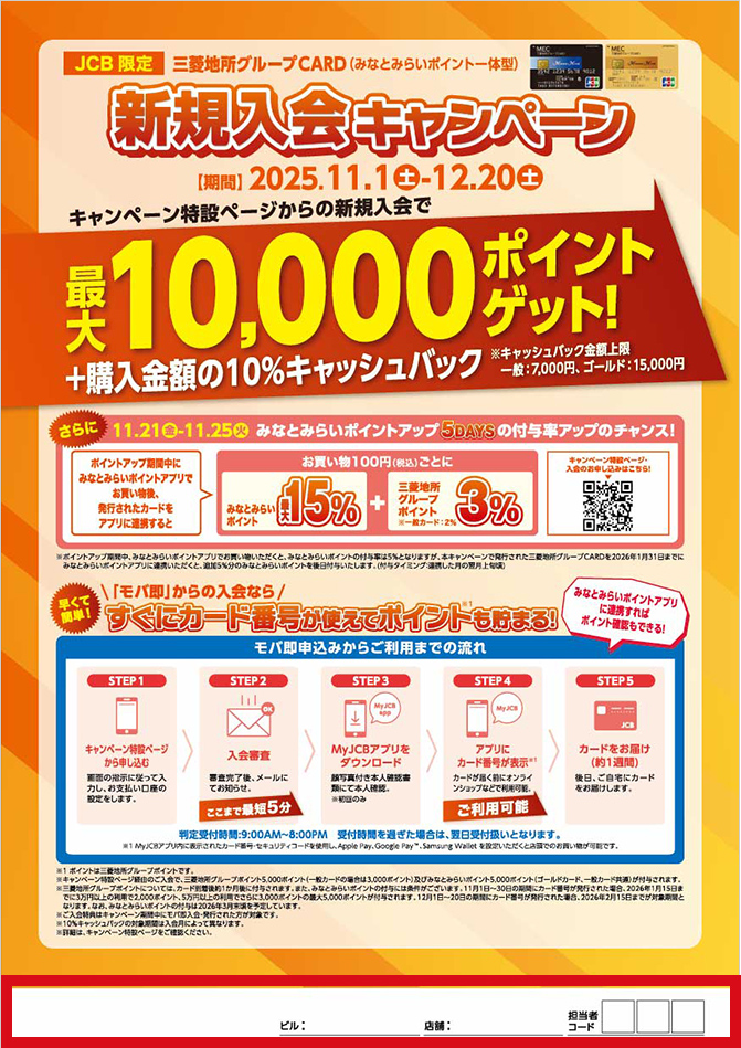 ※店舗からのご案内カードまたはチラシをお持ちの場合は赤枠をご参照ください。